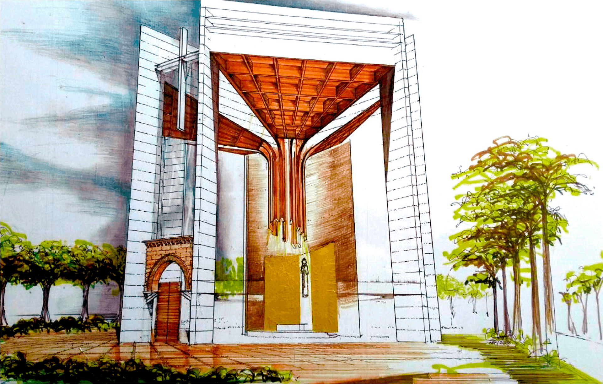 rodeada de jardines y de grandes árboles se erigirá esta imponente obra, fruto de la crea vidad y experiencia de los arquitectos Antonio Musi Afif y Gonzalo Gómez-Palacio.